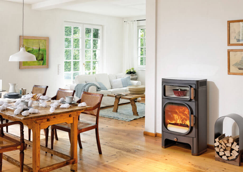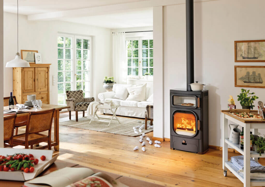 Zwischen den Hauptstädten München, Salzburg und Wien liegt das beschauliche Oberösterreich. In diesem Ort wurde vor mehr als 30 Jahren von Ferdinand Huemer das österreichische Unternehmen Austroflamm GmbH gegründet, welches sich seitdem als Hersteller von hochwertigen Kaminöffen und Pelletöfen, einen Namen in der Welt gemacht hat. Seitdem ist dieses Unternehmen durch zahlreiche technische Innovationen im Ofenbereich gekennzeichnet. Im Jahr 1986 wurde den ersten Koch- und Backkaminofen entwickelt, und im 2002 das effiziente Wärmespeichersystem Heat-Memory-System. Mit dem Heidi Back Kaminofen lässt sich nicht nur die optimale Raum-Heizung unterstützen – einen Kaminofen mit Backfach kann man auch zum Braten, Backen und Überbacken verwenden. Der Austroflamm Kaminofen Heidi Back eignet sich nicht nur für das gemütliche Abendessen, sondern lässt die draußen herrschende Kälte schnell in Vergessenheit geraten.Eine große Gusstür ermöglicht einen breiten Blick auf das Flammenspiel. Zeitlos schön ist Heidi Back die ideale Lösung für jede Raum- und Lebenssituation. Der Austroflamm Kaminofen Heidi Back ist ein hochwertiger und effizienter Kaminofen aus der österreichischen Marke Austroflamm. Dieser Kaminofen verfügt über eine integrierte Backfunktion, mit der man beispielsweise Brot oder Pizza direkt im Ofen backen kann. Der Heidi Back verfügt über eine moderne und ansprechende Optik, die sich in nahezu jedem Wohnraum gut integrieren lässt. Er sorgt nicht nur für eine schöne Atmosphäre, sondern kann auch als effektive Wärmequelle dienen. Mit dem Austroflamm Kaminofen Heidi Back kann man nicht nur seine Räume beheizen, sondern auch kulinarische Genüsse direkt im eigenen Zuhause genießen.