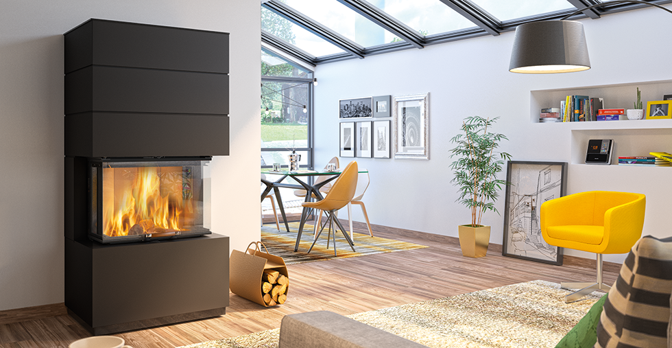 Cera Kaminanlage Linea KLC mit Stahlverkleidung