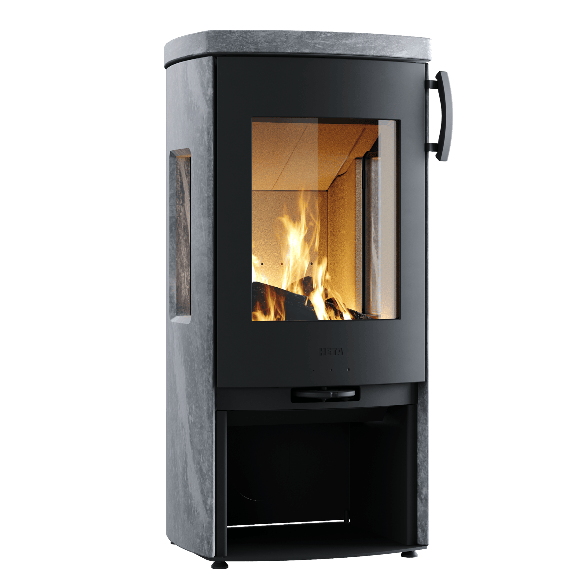 Der Heta Kaminofen Icon Line Eclipse mit Seitenscheiben ist ein eleganter und moderner Holzofen, der für gemütliche Wärme im Wohnbereich sorgt. Der Ofen verfügt über großzügige Seitenscheiben, die einen schönen Blick auf das knisternde Feuer ermöglichen. Er ist mit einer hochwertigen Verkleidung aus Stahl oder Speckstein erhältlich und hat eine Nennwärmeleistung von 5,5 kW. Der Icon Line Eclipse bietet einen hohen Wirkungsgrad und ist mit einer praktischen Scheibenspülung ausgestattet, die ein Verschmutzen der Scheiben verhindert. Zusätzlich verfügt er über eine externe Verbrennungsluftzufuhr und erfüllt somit auch die Anforderungen in gut isolierten Häusern. Mit dem Heta Kaminofen Icon Line Eclipse können Sie eine angenehme und gemütliche Atmosphäre in Ihrem Zuhause schaffen. Eclipse Seitenscheiben ist ein schöner und leistungsstarker Kaminofen, der sich perfekt für kleinere Räume als gemütlicher Versammlungsort für Familie und Freunde eignet. Es besteht die Möglichkeit, sich zwischen den Farben Schwarz und Grauen Farbe sowie den Materialien Stahl und Speckstein zu entscheiden, so dass Eclipse Seitenscheiben ihren bestehenden Einrichtungsstil perfekt ergänzt. Mit einem sehr geringen Mindestabstand zu brennbarem Material hinter dem Ofen ist der Eclipse perfekt für Ferienhäuser geeignet. Der Eclipse ist sowohl mit als auch ohne Untere Tür.