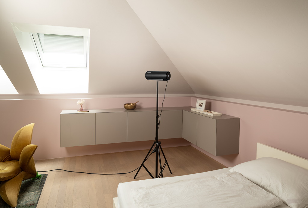 Mit dem dazu lieferbaren Stativ lässt sich der OZONOS AC-1 PRO wunderbar in den Raum gestalten.