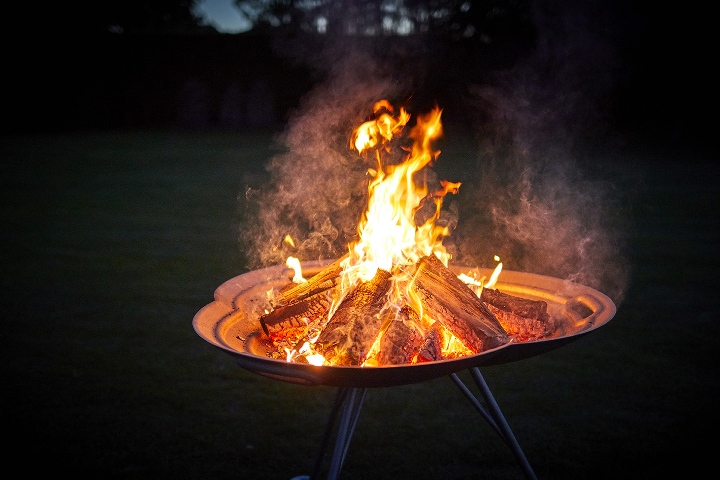 Die "Rippen" auf der Innenseite verhindern ein Verrutschen der Stämme. Auch ohne Feuer ist der Lotus ein schönes Dekorationsobjekt für den Garten.