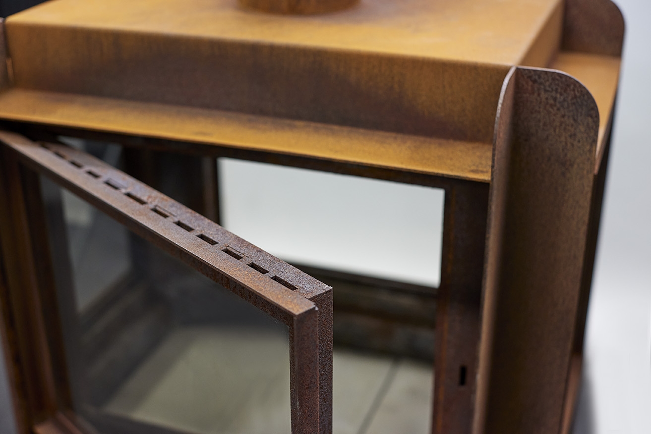 Die Kamine haben Glasfronten, so dass Sie nicht unter Rauch, Asche oder Funken auf der Terrasse. Der CorTen-Stahl verleiht den Kaminen ein solides Aussehen und eine lange Lebensdauer. Der Rostprozess ist bei jeder Feuerstelle anders und daher ist jede Feuerstelle einzigartig. Wie die Skandinavier sagen: "Keine Terrasse ohne ein Feuer .............."