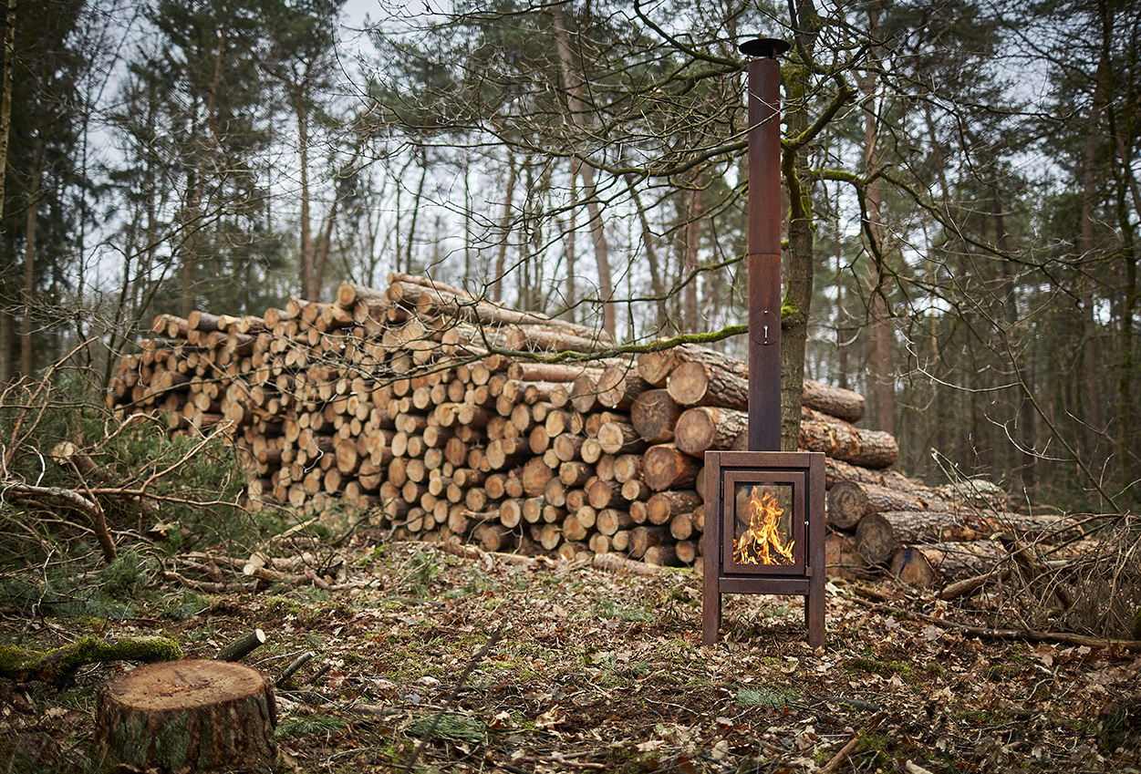 Die Kamine haben Glasfronten, so dass Sie nicht unter Rauch, Asche oder Funken auf der Terrasse. Der CorTen-Stahl verleiht den Kaminen ein solides Aussehen und eine lange Lebensdauer. Der Rostprozess ist bei jeder Feuerstelle anders und daher ist jede Feuerstelle einzigartig. Wie die Skandinavier sagen: "Keine Terrasse ohne ein Feuer .............."